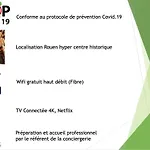 В этих апартаментах для удобства гостей предусмотрены такие удобства для самостоятельного приготовления пищи, как микроволновая печь, кофеварка и кухонная утварь. В апартаментах предусмотрена кофеварка. Ресторан Chez l'Gros с блюдами французской кухни ждет гостей всего в 5 минутах ходьбы. Гости также могут сесть на автобус на автобусной остановке Belges, расположенной в 550 метрах, чтобы посетить соседние районы Руана.
